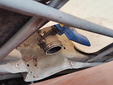 - Нижняя часть: сливной узел с синим рычагом (кран/задвижка) и выход под подключение.