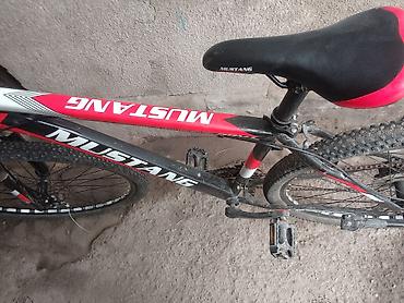 - Седло Mustang с красно‑черной отделкой, подседельный штырь с зажимом под шестигранник
