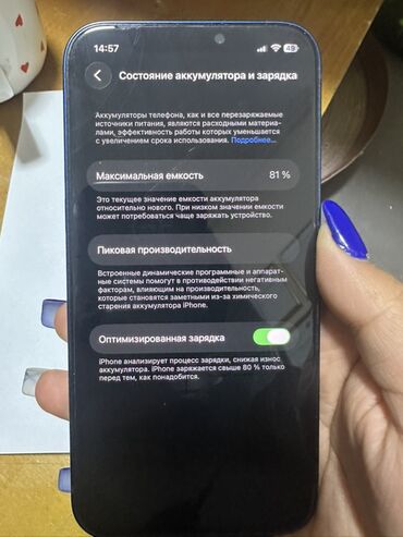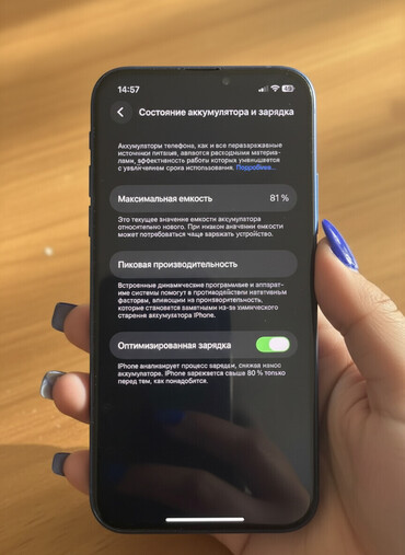 Состояние аккумулятора по скриншоту из «Состояние аккумулятора и зарядка» — максимальная ёмкость 81%, «Оптимизированная зарядка» включена.