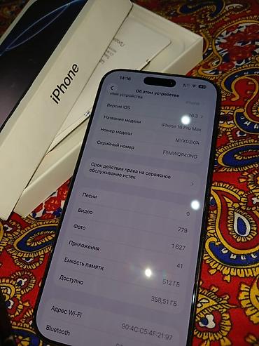 IPhone 16 Pro Max, 512 ГБ, цвет чёрный (титановый оттенок). В комплекте: фирменная коробка, документация.