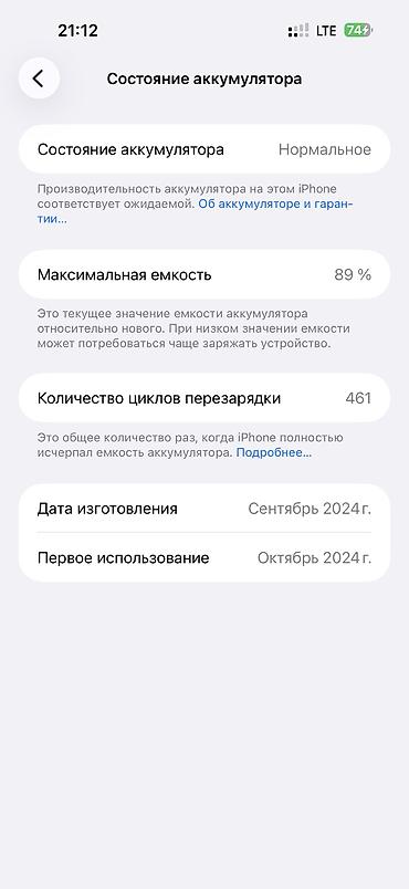 - Аккумулятор: максимальная ёмкость 91%, состояние «Нормальное»