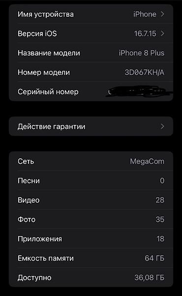 IPhone 8 Plus, цвет Gold Характеристики и подробности: - Модель: iPhone 8 Plus - Номер модели: MQ982LL/A - Память: не указана (стандартная линейка 64/256 ГБ) - iOS: 16.7.1 (4) - Серийный номер: F2...