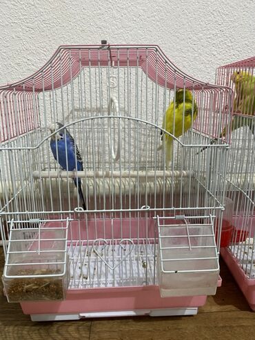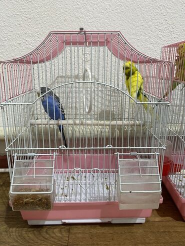Клетка для мелких птиц с аксессуарами и 2попугаи - Размер