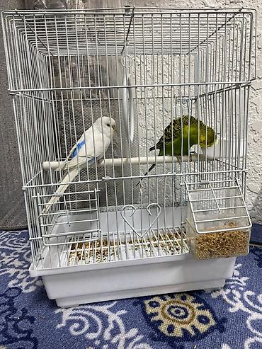 Большая клетка для мелких и средних птиц за 3000 сом. Попугаи за 1 штуку 1500 сом - Просторная прямоугольная клетка с фигурной крышей, металлические прутья светлого цвета. - Съемный глубокий подд...