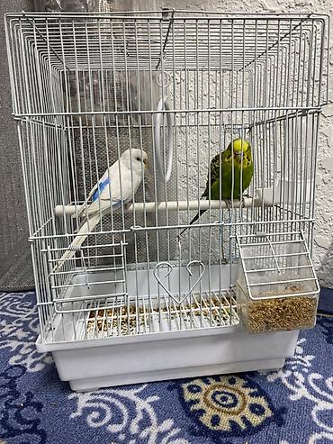 Клетка для волнистых попугаев с аксессуарами - Два волнистых