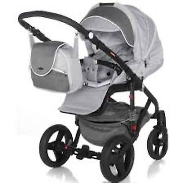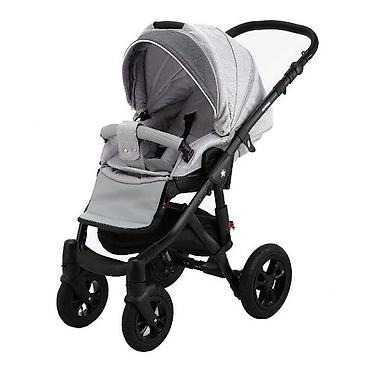 Универсальная детская коляска серого цвета, предназначенная для новорожденных и детей постарше. В комплект входит люлька для младенца, прогулочный блок с регулируемой спинкой и возможностью установ...