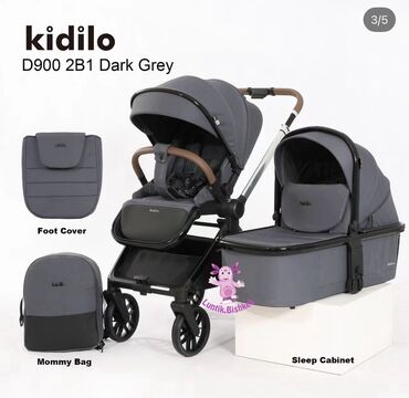 Универсальная детская коляска Kidilo D900 2B1, представленная в черном, синем, темно-сером и зеленом цветах, идеально подходит для использования с рождения. В комплекте идет люлька для новорожденно...