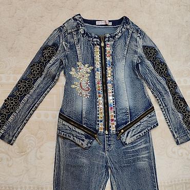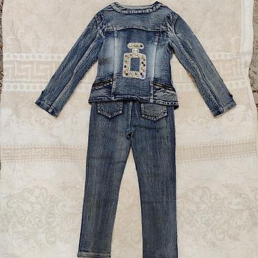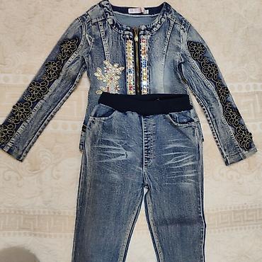 Продаю джинсовый костюм на девочку возраст 9-12 лет цена 1000 сом б/у