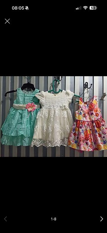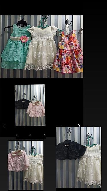 Детский комплект одежды для девочки 4 года . Цена символично: все платья за 350сом ;джинсы с кофтой 250сом ; безрукавка со спортивными за 100сом там пятна есть ;остальные бесплатно .