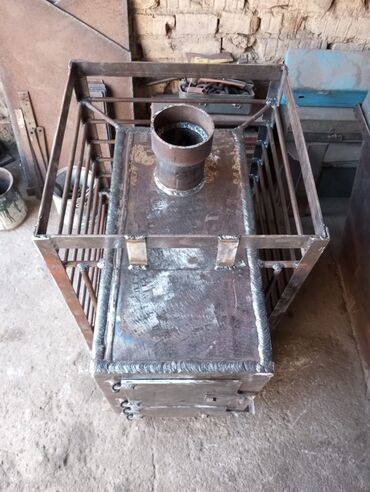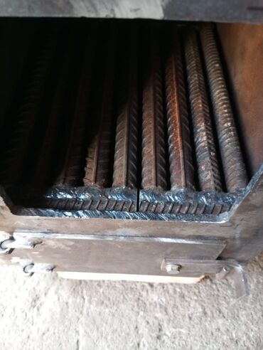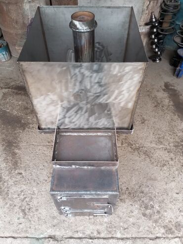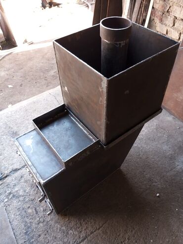 - Конструктив: выносная топка с зольником и дверцами на запорных рычагах, колосники из арматуры, вертикальный дымоход через бак для ускоренного нагрева воды.