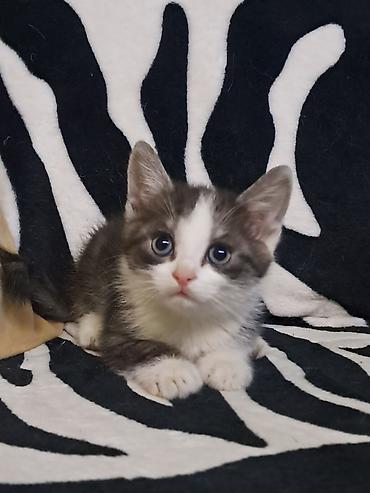 - Серо-белый биколор с симметричной белой маской и носиком, белые лапки и грудка.