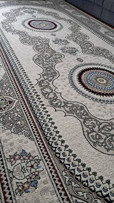 - Дизайн: центральные медальоны-мандалы, продольные бордюры с орнаментом, флоральные вставки; аккуратная бахрома по краям