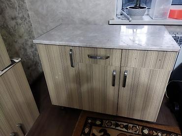 - Столешницы светло‑серые под камень, устойчивые к повседневным нагрузкам.