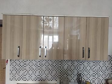 - Навесной блок с шестью створками, металлические ручки, удобная организация хранения для посуды и продуктов.