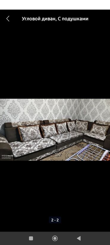 Угловой диван «Империя» • Размер: 400×200 см • Каркас: массив сосны и ДСП • Наполнение сиденья: поролон ППУ плотностью 25×45 (Россия) • Подушки: синтепон • В комплекте: 3 декоративные подушки • Мех...