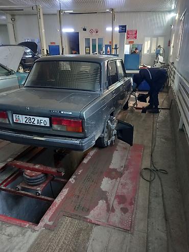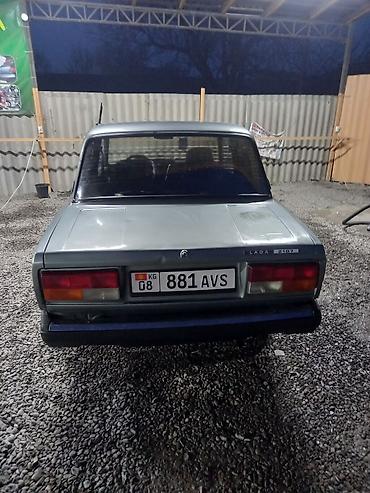 Lada 2107, седан, серебристый цвет. Классический заднеприводный автомобиль с прямыми линиями кузова и характерной решёткой. Номерной знак KG 08 881 AVS (Кыргызстан).