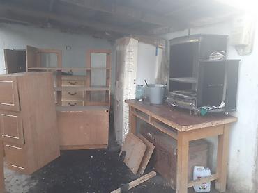 Идеально для обустройства подсобного помещения, дачи, гаража или мастерской: много полок и мест хранения, прочные деревянные столы, базовая холодильная техника.