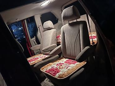 - Салон: светлая тканевая отделка, три ряда сидений. Во втором ряду — раздельные капитанские кресла с подлокотниками; третий ряд — полноразмерный, складывается для увеличения багажника. Потолочный свет, карманы в дверях, центральная консоль с нишами. На сиденьях — чехлы/коврики.