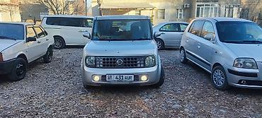Nissan Cube, праворульный городской минивэн/хэтчбек в серебристом цвете.