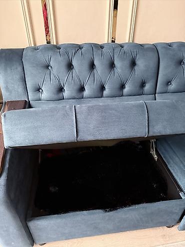 - Обивка: мягкая велюровая ткань; декоративная каретная стяжка на спинке и сиденьях.