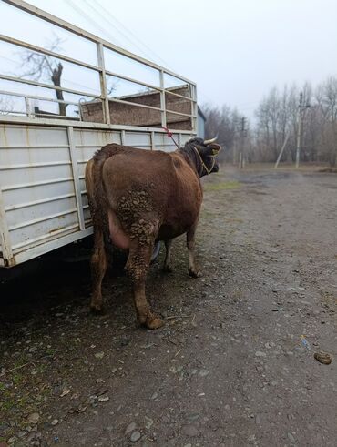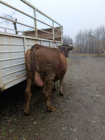 Биринчи туут, 9 ай бооз, ден-соолугу таза, бою 140см, швицке уруктандырылган кунажын сатылат дареги Беловодское, баасы 400000 сом, кызыккандар номерине ватсапп аркылуу байланышса болот. Коровa молочная, рогатая, масть буро‑рыжая. На фото видно развитое вымя, ушные бирки, недоуздок с привязью. Спина ровная, крепкие ноги, широкая грудь и хороший объём туловища. Подходит для личного подсобного хозяйства: регулярные дойки, пастбищное содержание, стойловый период. Спокойный характер, управляемая на привязи.