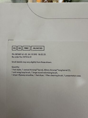 Комплектация: фирменная коробка Airwrap i.d. от Dyson (модель с BT). Вес упаковки указан: 3.30 кг. На коробке — серийная и штрих-кодовая маркировка.