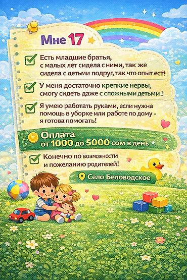 Няня для Вашего Малыша❤️✨ **Услуги няни** Меня зовут Айжан, мне 21 год. Предлагаю услуги няни для детей любого возраста. Имею опыт работы более 3 лет — работала как с грудничками, так и с детьми п...