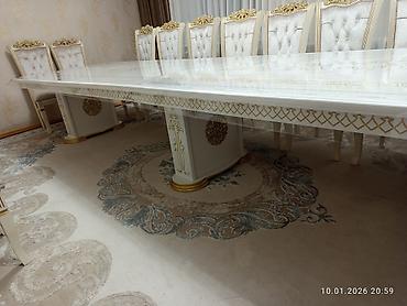 - Опоры стола с резным медальоном и золотистыми элементами, основание в тон.