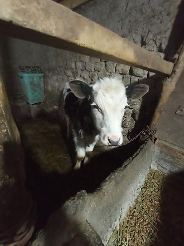 Срочно продаю Бычок, чёрно-белый окрас хороший породы возраст 5-6 месяцев (ящрем не болеет)