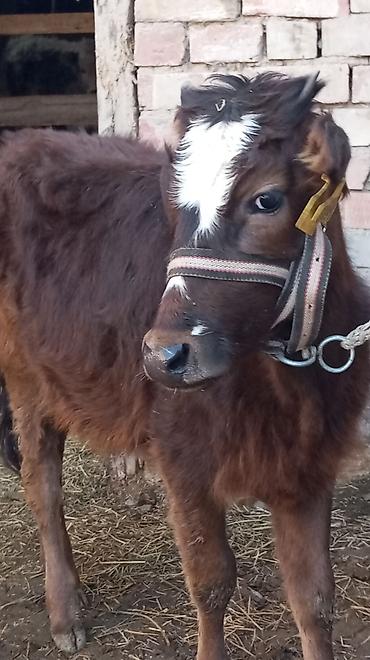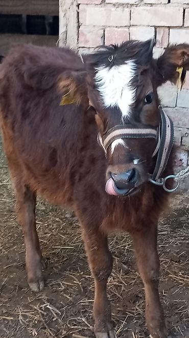 Телёнок (молодняк КРС), темно-коричневый, кудрявая шерсть, рога начального роста. Ушные бирки установлены, индивидуальная идентификация есть. Содержится на подворье, на привязи, привык к человеку. ...
