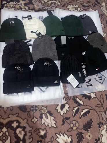 Вязаные шапки-бини разных моделей и цветов. - Материалы: плотная трикотажная пряжа, эластичная резинка, мягкая посадка. - Дизайны: классические однотонные (черные, белые, красные, фиолетовые), н...