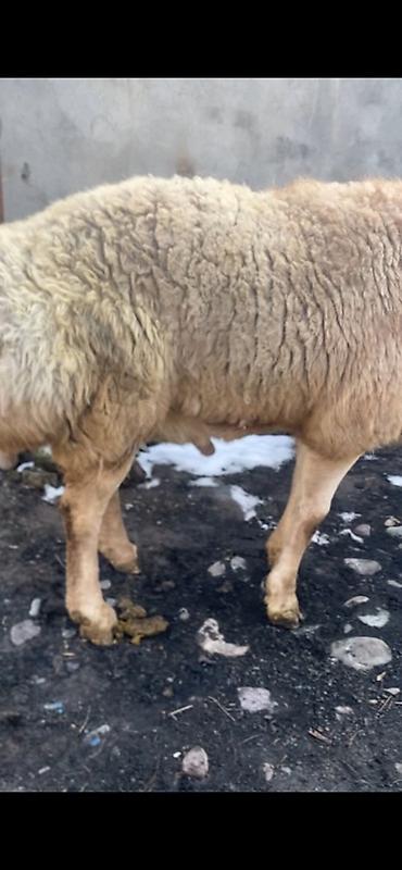 Овца (матка), мясо-шерстного направления. - Порода/тип: крупная овца с полутонкорунной шерстью, светло-бежевого окраса. Длинные висячие уши, ушная бирка. - Телосложение: мощный костяк, глубокая гр...
