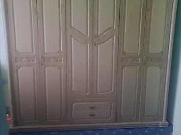 - Габаритный 6-дверный шкаф с центральным модулем и двумя нижними выдвижными ящиками.