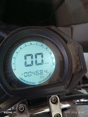 - Современная цифровая приборная панель: спидометр km/h, одометр (на фото отображается 004684 км), индикатор уровня топлива, заряд аккумулятора, тахометр.