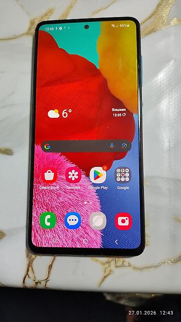 ОБМЕНА НЕТ! Samsung Galaxy A51 64гб. (белый) с коробкой. Посмотреть можно Тимура Фрунзе/ Гагарина, Джал. Был в ремонте, меняли батарейку на оригинальную, Б/у за 1000сом. Заряд держит 6-7часов п...