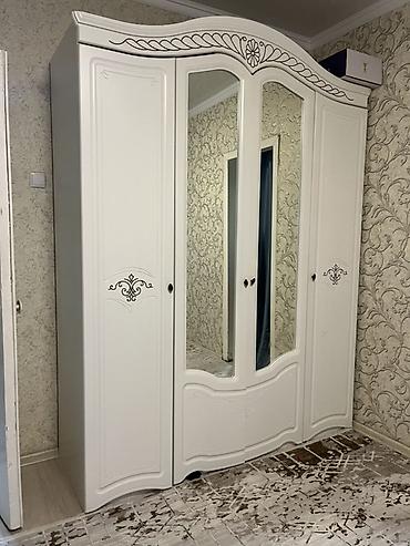 - Трехдверный шкаф: центральные двери с зеркалами, боковые глухие, фигурные фасады.