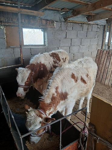 Бычки, рогатые. Окрас черный с белыми отметинами (у одного — белая «звезда» на лбу и белые носки на ногах). Содержатся в закрытом хлеву на привязи, кормление сеном и грубыми кормами. Корпус широкий...