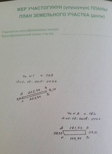 СРОЧНО! Продаётся участок 8 соток 📍 Арча-Бешик, ул. Шералиева (выше магистрали) 📏 20×40 м 🔌 Все коммуникации 🏡 На участке 2 небольших дома 📄 Документы в порядке 💰 235 000 $ 📞 Тел: ________