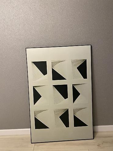 - Современный геометрический дизайн: композиция из 9 квадратов с динамичными треугольными формами и «лучевыми» линиями, создающими эффект объема и движения.