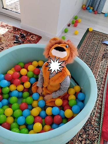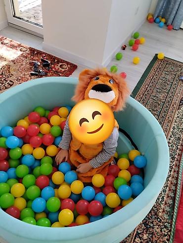 - Наполнение — пластиковые шарики разных цветов (красные, жёлтые, зелёные, синие). Подходит для сенсорных игр, развития моторики и активного досуга дома.