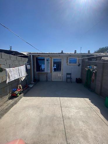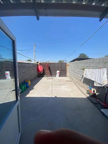 - Отдельностоящий одноэтажный дом с закрытым внутренним двором из бетона и откатными воротами. Высокие стены по периметру, навес у входа, удобные подъезд и место для парковки/хозяйственных нужд.