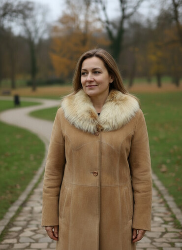 Зимние верхние вещи — комплект из трех изделий 1) Дубленка-трансформер, коричнево‑бежевый оттенок: - Натуральная овчина с мягким густым мехом внутри - Объемный меховой воротник‑пелерина, отложной ...