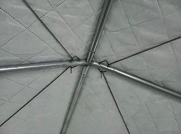 - Тёплый внутренний тент: стёганый утеплитель по стенам и крыше, обеспечивает теплоизоляцию и снижает конденсат.