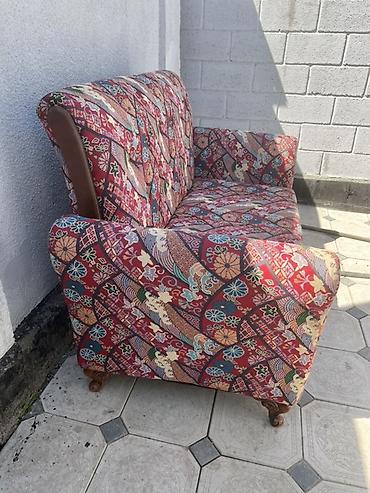 Подойдет как акцентная мебель для интерьера в винтажной, эклектичной или бохо-эстетике. Основание устойчивое, тканевый рисунок придает яркий характер и хорошо скрывает мелкие следы эксплуатации. Цена 5000 сом срочно