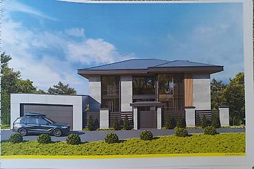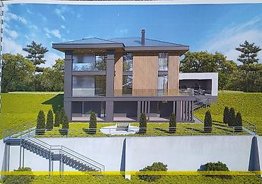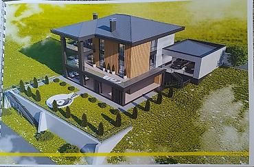 Беш-Кунгой, 5,03 соток,имеется топографическая съемка участка, а так же готовый архитиктурный и конструктивный проект на двух этажный дом с подвалом. Проект современного частного дома с плоско‑вальмовой крышей и панорамным остеклением