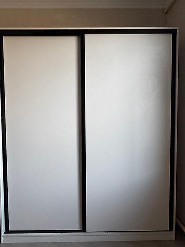 Габариты по фото ориентировочные: высота около стандартной (около 2 м), ширина — под две двери. Раздвижные двери обеспечивают экономию места перед шкафом.