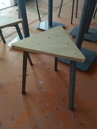 - Размер стороны треугольного сиденья табурета: около 30–35 см.