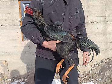 Петух бойцовского типа (высокие ноги, крепкий корпус, длинная шея). Окрас — черный с зеленым металлическим отливом и легкими медно‑рыжими вкраплениями на гриве и корпусе, хвост с саблевидными косицами. Гребень малый, кожа на морде красная, клюв желтый, лапы ярко‑оранжевые с мощными когтями. Перьевой покров плотный, крылья прижаты. Активный, подвижный, хорошо держит стойку. Подходит для разведения пород с высоким ростом и выраженной атлетикой, улучшения экстерьера потомства, а также как сельскохозяйственная птица на подворье. Возраст визуально молодой, тип телосложения — стройный, вытянутый. Фото сделаны 26.01.2026 (см. метки на снимках).