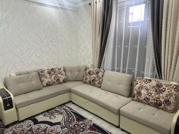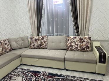Угловой модульный диван в классическом стиле. Б/у но в отличном состояние , раскладывается 9 подушек - Форма: полукруглый/угловой, секционный. - Обивка: сочетание велюра бежевого оттенка (спинка ...