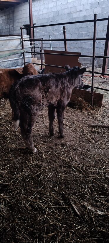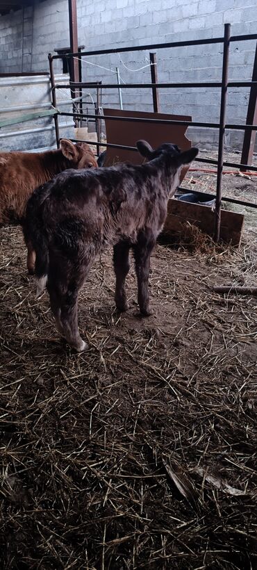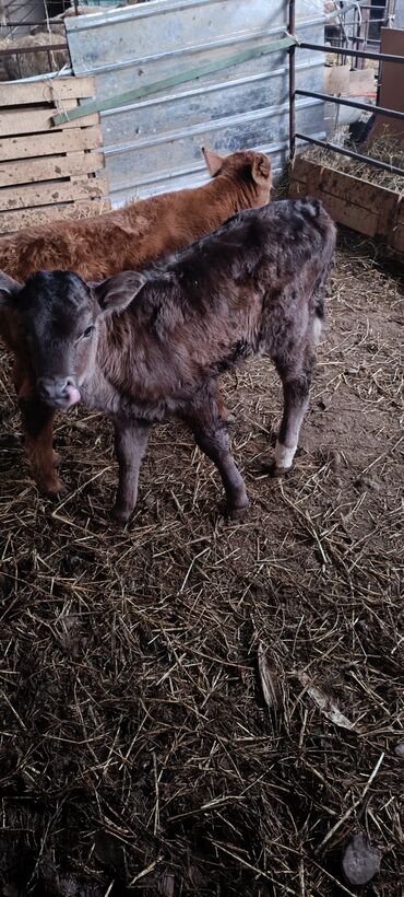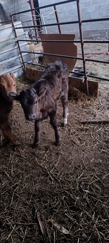 Телёнок мясо-молочного направления. Описание: - Молодой телёнок с бирками идентификации в обоих ушах. - Окрас: тёмно-каштановый с белыми отметинами на голове и конечностях. - На недоуздке, приучен...